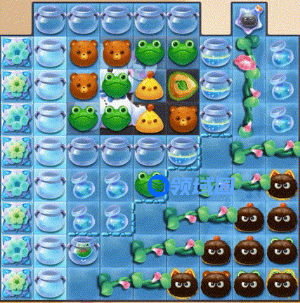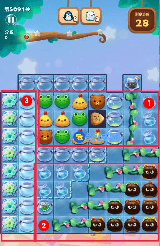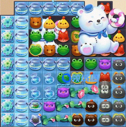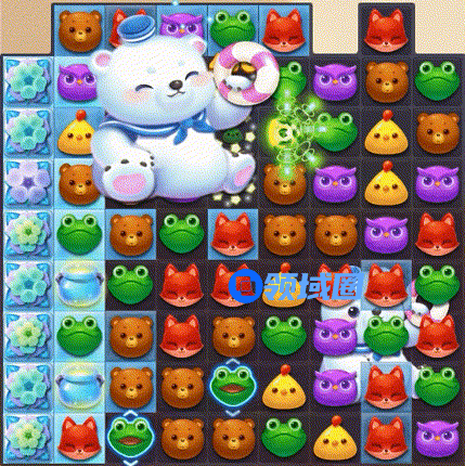 贴边三消/留意特效组合,消除剩余雪块救出小动物。