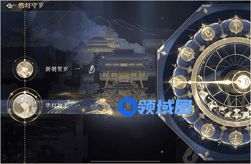 2、手动切换1次时辰剧情任务:从活动主界面进入左下角燃灯守岁活动剧情,任意点一个时辰可以切换到下面这个界面,转一下右边的时钟就可以拿到奖励。