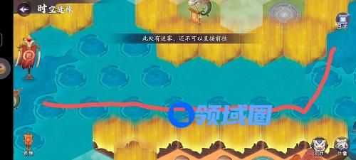4、第四步:然后往右一直走来到这里,注意沿着红线去传送阵里面。