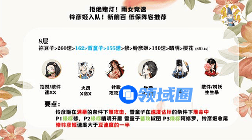 阴阳师雨女竞速前百低保阵容怎么搭配?阴阳师雨女竞速排名越高获得的奖励也就越丰富,游戏宝小编带来阴阳师雨女竞速前百低保阵容推荐攻略2022,希望可以帮到大家。