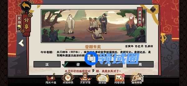 3.渔樵问答中每天都会有各种各样的题目,大部分为历史知识,也有一部分为游戏内知识,游戏宝手游网将会每天持续更新答案,欢迎大家关注。