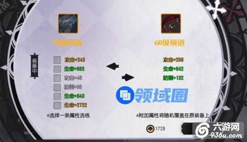一件装备上最多同时拥有6条属性,达到6条属性之后再进行洗炼的话就需要选择其中一条属性和希望洗炼的属性替换,如果没有替换到希望的属性的话,可以花费钻石取消这次洗炼,但是用于洗炼的装备也会消失。