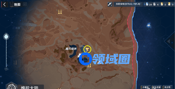 魔爪绿洲东方岸边,坐标(878,-791)。