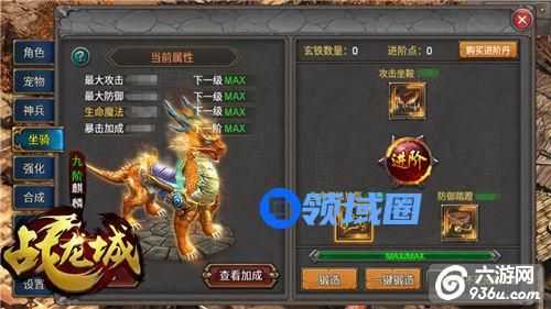 作为《战龙城》手游迄今最高阶的坐骑,麒麟所带来的属性加成十分可观,自然是所有坐骑中最高的。装备麒麟坐骑,能够为勇士们带来最大生命、最大防御和魔法生命以及暴击加成四种属性的提升。超高的属性加成,让你的战力轻松飙升,问鼎龙城强者之巅。