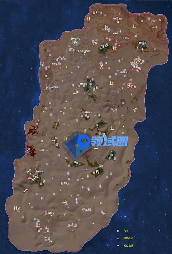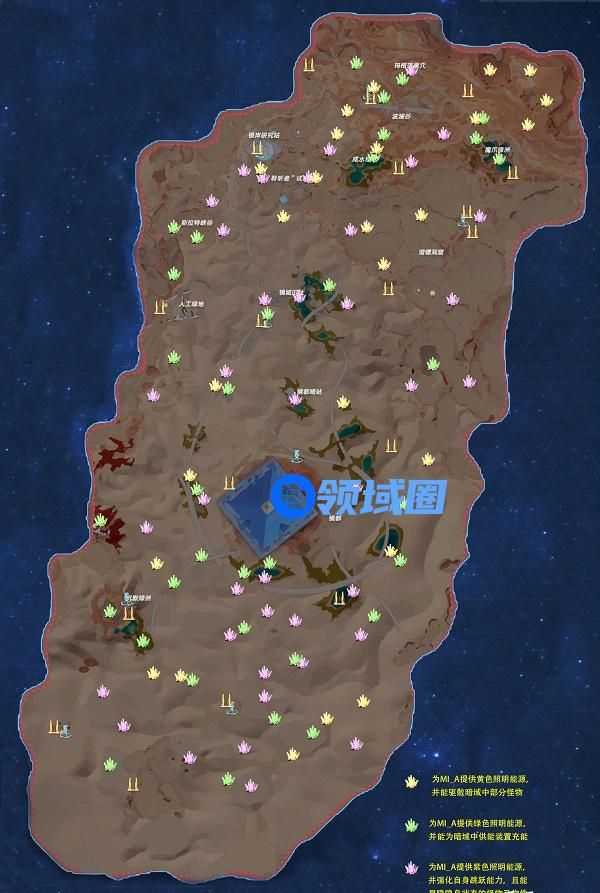1.暗域晶石点位(图中只标记了解谜经常用到的绿色、紫色、黄色晶石)【部分距离很近的同颜色晶石,图中只做一个标记】