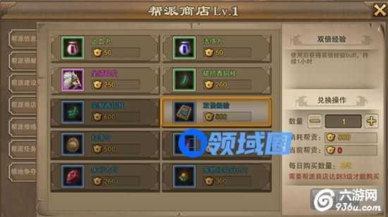帮派商店等级越高,商店可购买的物品越多,商店购买消耗帮贡。