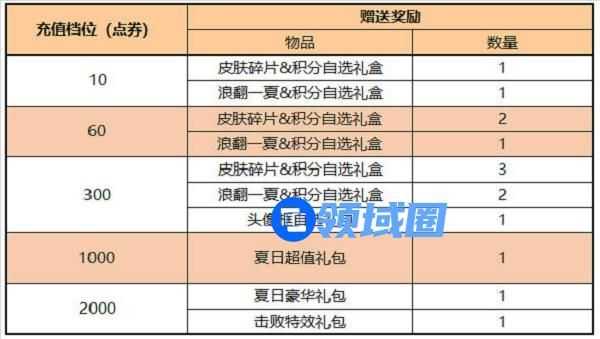 6.夏日超值礼包:打开礼包可任意选择以下奖励之一:铭文碎片*600、战令币*40、战令经验*2000