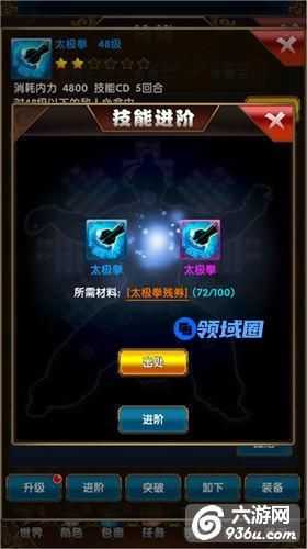 技能进阶需要消耗对应的技能残卷,技能残卷获取途径可以通过点击出处按钮查看。技能成功进阶后会获得对应的效果和属性加成。