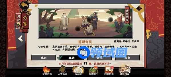 2.正确答案为孔融,玩家们选择第二项即可获得奖励。