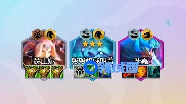 1.阵容组成:瑟庄妮、莉莉娅、努努、艾维尼亚、奥恩、赫卡里姆、迭嘉