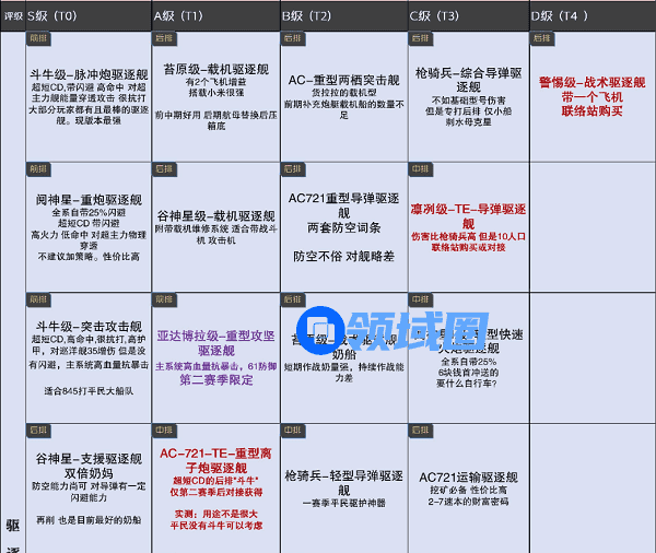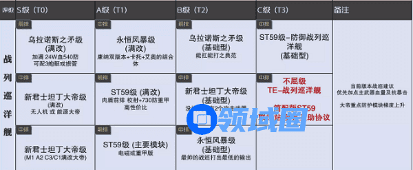 ①S级:广大玩家都认可很强并实测综合能力的确很强的舰船。