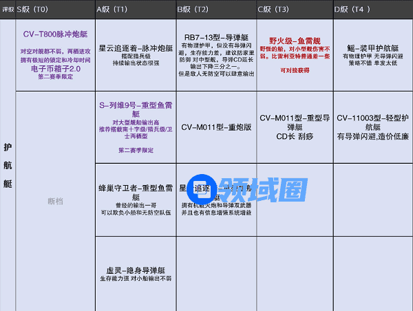 ⑤D级:玩家不推荐且较为鸡肋的舰船,或存在缺陷bug的舰船。
