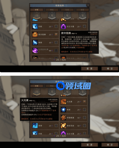 3.第二个技能推荐欺诈图腾或者火元素,欺诈图腾CD短但是无法移动,火元素可以移动CD长
