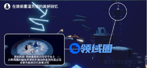 2、在禁阁重温先祖的美好回忆:禁阁四层,雨林星图右边浮空平台上。需摆出祈祷动作直到中间石碑完全变白,然后重温出现的先祖的收集过程。