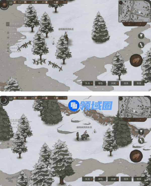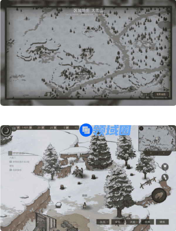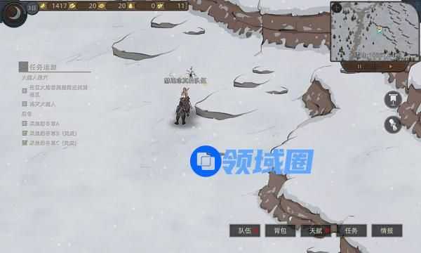 1.首先我们来到大雪山的南岩村上面的地方接任务,之后点这个发光点