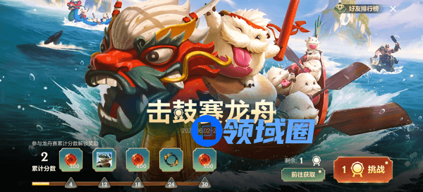 1.在游戏内每日登录游戏、完成1场对局、分享龙舟赛活动或龙舟赛成绩,可分别获得1次参与龙舟赛挑战机会。