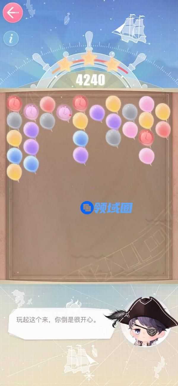 这个游戏没什么特别技巧,三星的门槛大概在4200左右。如果气球排列的不好,打不出高分时,可以在剩最后一组气球没消的时候退游戏重进(不扣体力)多试几次,但如果全部都消除了就自动结束了,要扣体力哦