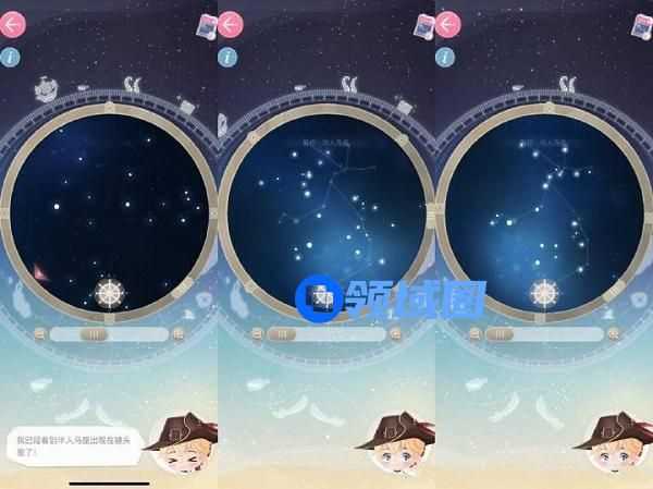 提前在商城兑换星座图,然后去指定地点(可在工作日志查看)找到望远镜看星座图,正确的星星会发亮,找到发亮的星星后,再调整角度和线条图对应即可,下图从左到右,分别是不正确的星星(不发光)—正确的星星(发光,但角度不对)—角度星星都正确,移动一下使星星和线条重合即可
