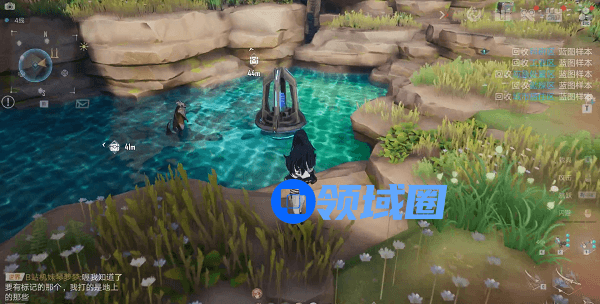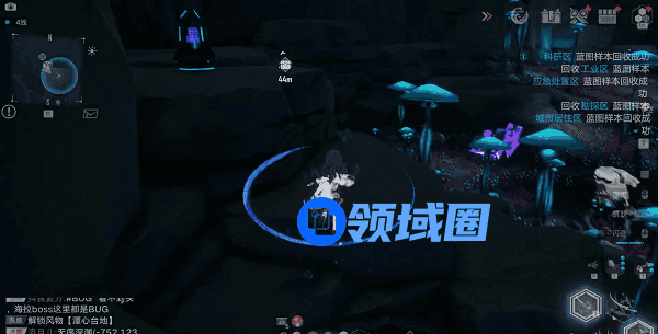 3.应急处置区:注意左上角小地图位置,到达篮圈后,可以看到一个很深的湖,跳下去,湖中间就是回收装置,旁边有一个精英怪,很难打,使用量子披风回收蓝图或者叫人把精英怪打了。