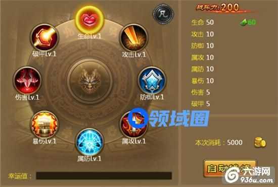 3、强化消耗强化石,强化失败不掉级,每次强化都会获得幸运值,幸运值越高越容易强化成功,成功后幸运值清零。