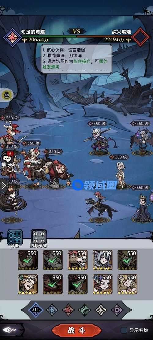 3、谎言浩图作为阵容核心可额外触发燃烧,不知道怎么打的玩家可以参考上图的阵容去挑战,要是没打过的话可以多试几次或者换下站位试试。
