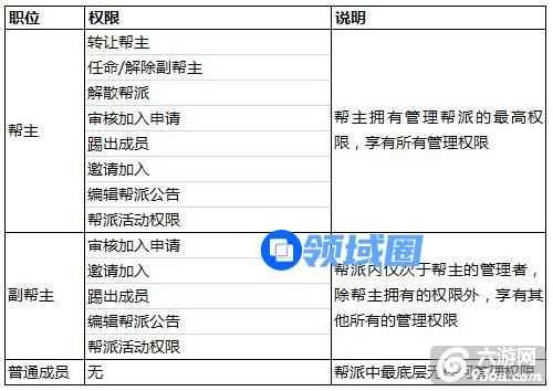 副帮主:由帮主任命,每个帮派可存在3个副帮主,副帮主职位不可自行转让;