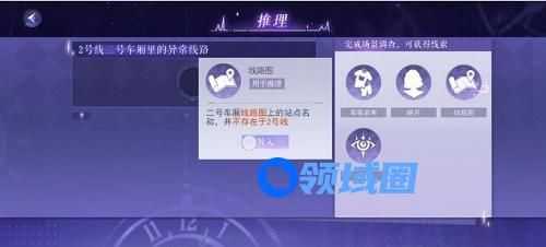 1、2号线二号车厢里的异常线路——选择【线路图】,车厢内不是2号线的线路图,而是某种残念形成的特殊线路图。