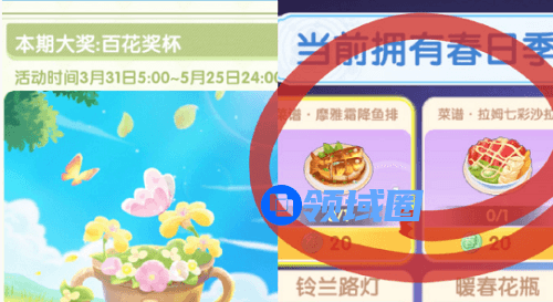 3、以上这两个菜谱都可以在庄园季节-春日季节商店兑换(各20个春日币)