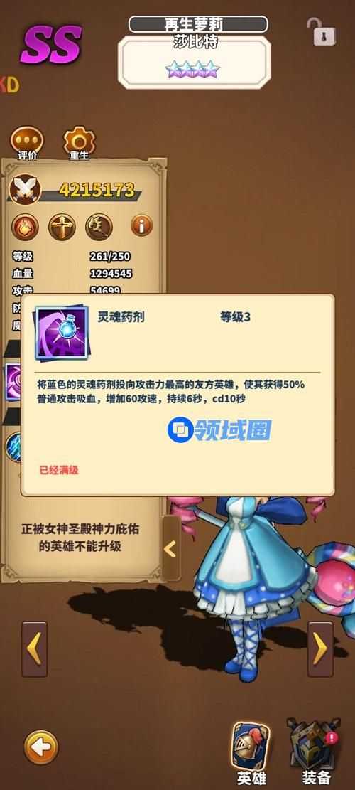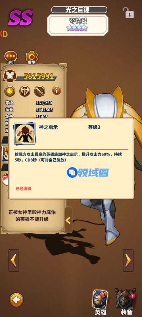 4、特质上我们选择雷霆一击、吸血、缓慢剑法 、低开高走,装备上选择魔能套装,培养思路极限培养巨剑一人,其余四个队友穿点低星装备或者不穿装备。