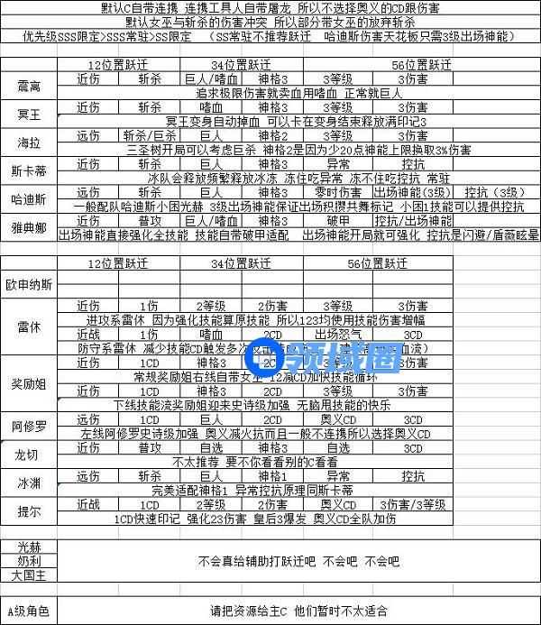 二、3.4位置选择:一般远程选择巨人 极限输出手法大佬选嗜血 根据神格一般选神3 剩下的酌情更换 其他的特定角色单独标注