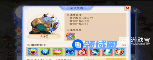 1、这一关可在自身拥有的卡牌里任选8张技能卡牌,选择的卡牌将在本次战斗中随机出现,数字卡牌随机出现不占用卡牌槽。