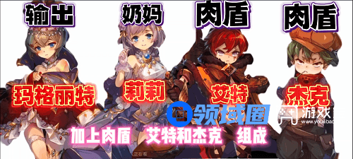 3、一般的阵容都是由一个主C,一个辅助,两个肉盾组成的,搭配也比较随机,上面的阵容可以当做参考。