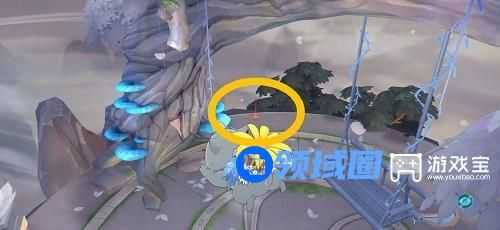 3、路线:传送至梦境终结之地,然后往前走,走上上面那个平台(如下图箭头指示),然后在秋千左边树根后面就能发现有一小撮微光闪烁。