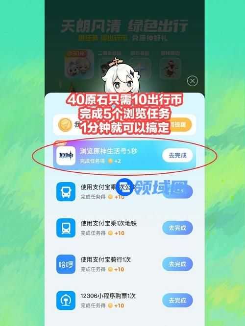 1、打开支付宝直接搜原神就行了,点进活动页面完成任务可以得出行币。