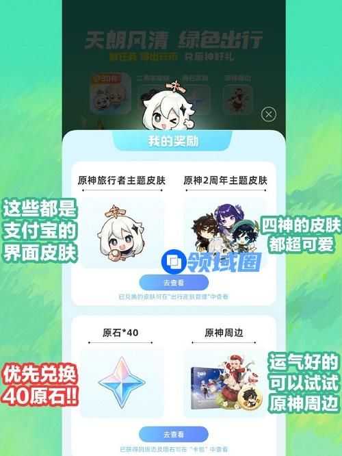 4、另外还能兑换原神主题皮肤,一款是原神两周年皮肤 上面有可爱小草神,一款是旅行者皮肤 上面有小派蒙,如果运气好还能得到徽章 插画集和可莉手办。