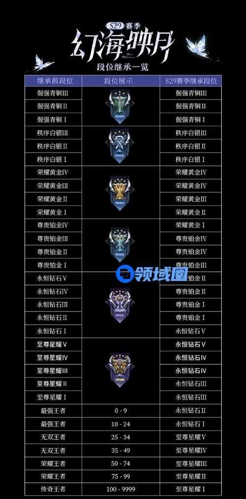 4、具体的玩家可以参考上图去对比,看看s29赛季大家都会继承到什么段位呢。