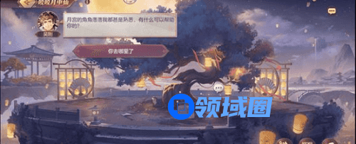 3、点击扁担上方的小对话框解锁“吴刚回来了”,然后右上角与吴刚对话解散“离开的理由”。