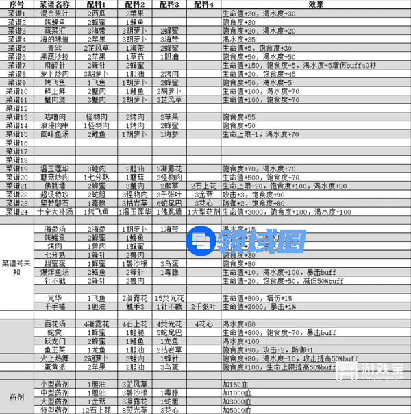 我的水世界求生菜谱大全攻略