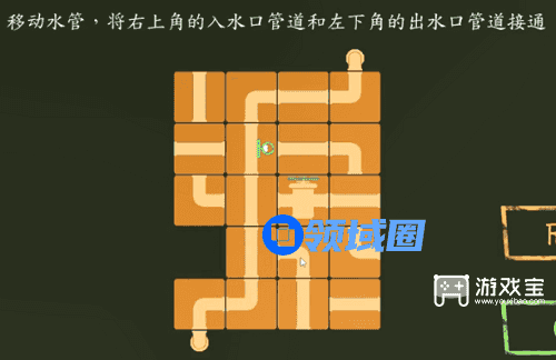 7、移动水管﹐将右上角的入水口管道和左下角的出水口管道接通。
