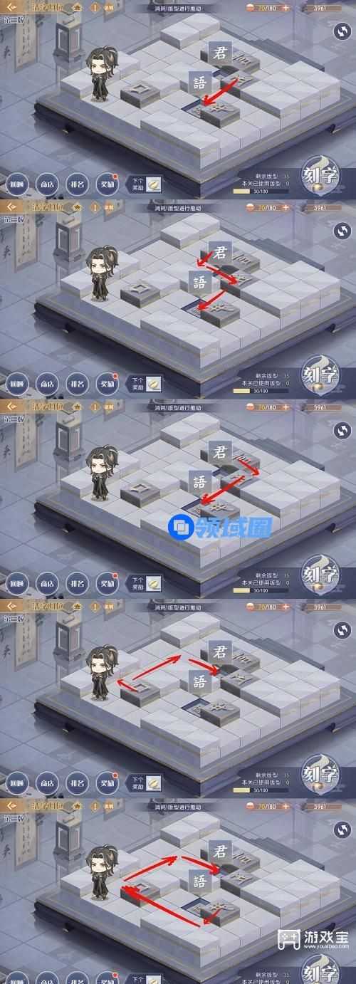 3、不知道怎么推的看上面的顺序按照上面的标记推就可以了,以上就是食物语活字归位第三关通关攻略了,希望可以帮到大家。