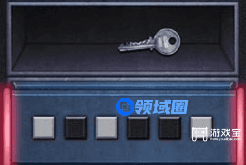 5、这时玩家需要点击上面的箱子,然后按照下图的按钮安动就能获取一把钥匙。
