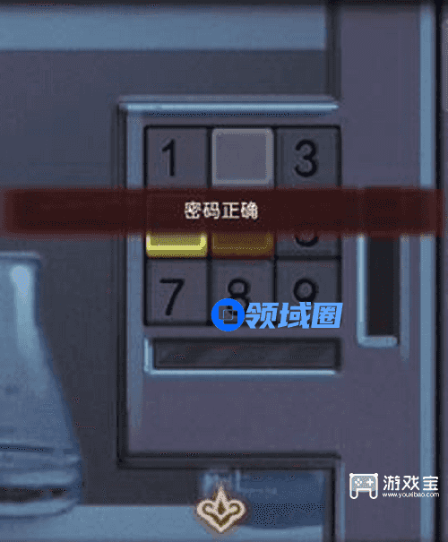 3、玩家点击左边红色的密码箱按照下图的位置就能打开箱子。