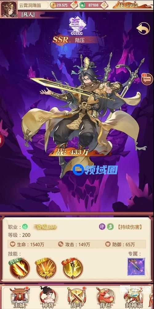 1、阵容推荐:陆压、孔雀明王、敖丙、另外两名神将可百搭任选。