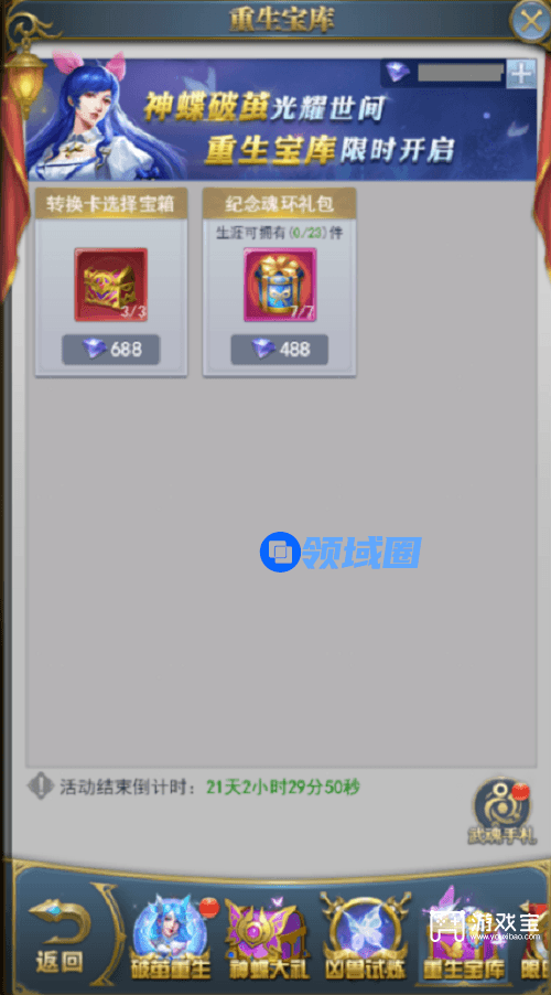 1、活动期间,可在重生宝库购买各种稀有物品。