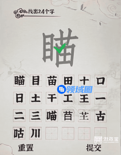 2、按照上面的答案在瞄上面写出24个字以后就可以过关了,有其他的汉字玩家也可以尝试一下。