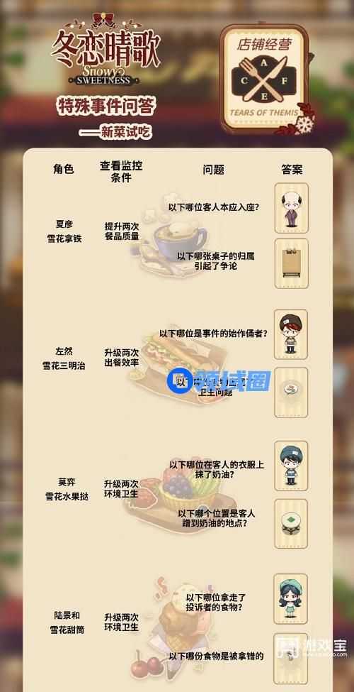 未定事件簿冬恋晴歌特殊事件问答中玩家需要根据答案选择正确答案,游戏宝小编带来未定事件簿冬恋晴歌攻略,一起来看看吧。
