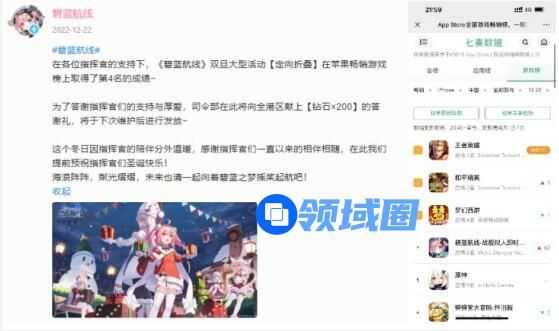 时至今日,《碧蓝航线》已经陪伴在指挥官们身边超过六年了,这六年里,《碧蓝航线》努力为大家带来与众不同的游戏体验,也因此换来了许多指挥官的不离不弃,这让《碧蓝航线》在六年里屡次登陆游戏畅销榜,在去年双旦期间,更是位列ios畅销榜第4位,可以说,正是指挥官们的认可才让《碧蓝航线》成为一棵二次元手游领域的长青树!