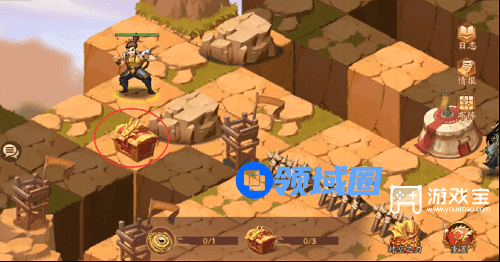 3、地图上部分拦路怪打完后会激活黄色符箓,黄色符箓点击后会灭火或者拿到buff(解锁关卡陷阱或拦路拒马),在对应拒马消失或,我们就可以去右上角,进去拿第3个宝箱。