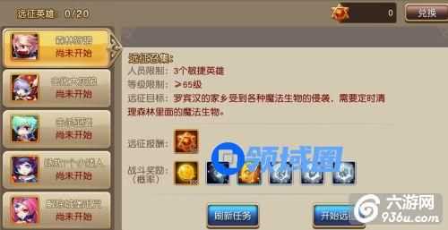 开始远征前召唤师需要选择不同的远征时间,选择完毕以后就能决定我方出战的阵容了。在游戏界面左下角能看到当前任务的限制与要求,右方则是系统自动选择出符合要求的出战英雄,召唤师在里面直接选取即可。