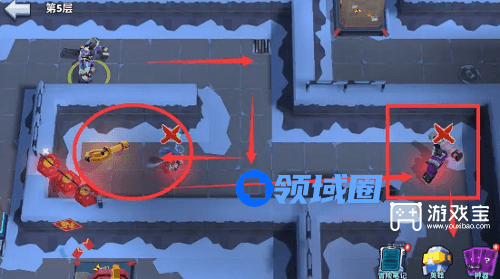 12、第13步:打开黄色门,然后按照红色箭头指示顺序,杀掉怪物。(如上图所示)